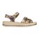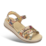 Sandale aus foliertem Leder mit Blumenmuster, anpassbar mit drei Klettbändern, Lederfutter, austauschbares Leichtkorkfussbett mit ALCANTARA-Bezug, Sommer-Style-Sohle