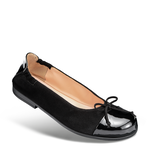 Lack-Ballerina aus samtigem Veloursleder mit eleganter Lack-Applikation, federleicht und flexibel, Sacchetto-Machart, ledergefüttert, lederbezogenes Fussbett, Eleganza-Sohle